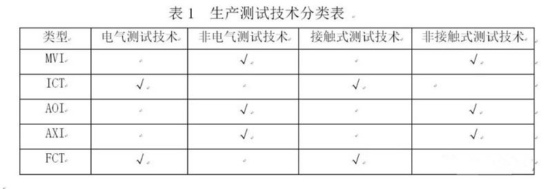 目前在電子組裝測(cè)試領(lǐng)域中使用的測(cè)試技術(shù)種類繁多,常用的有人工目視檢查(Manual Visual Inspection,簡(jiǎn)稱MVI)、在線測(cè)試(In-CircuitTester,簡(jiǎn)稱 ICT)、自動(dòng)光學(xué)測(cè)試(AutomaticOptical Inspection,簡(jiǎn)稱 AOI)、自動(dòng) X 射線測(cè)試(AutomaticX-ray Inspection,簡(jiǎn)稱AXI)、功能測(cè)試(Functional Tester,簡(jiǎn)稱 FCT)等。